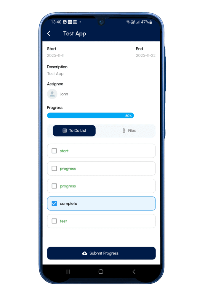 Create, assign and prioritize tasks with due dates and progress tracking for better organization.